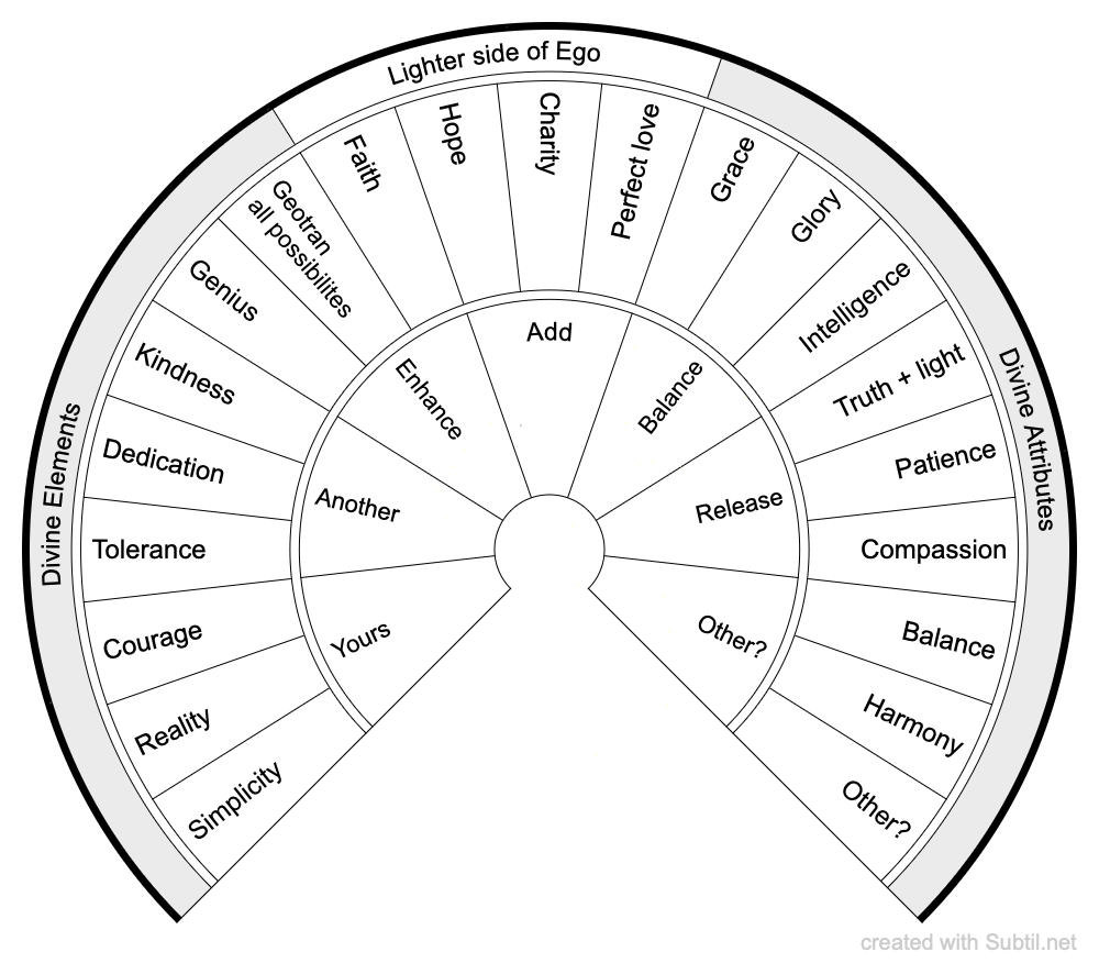 Divine Elements underlie physical creation; divine ego creates positive desires; divine attributes are how we reflect Spirit.