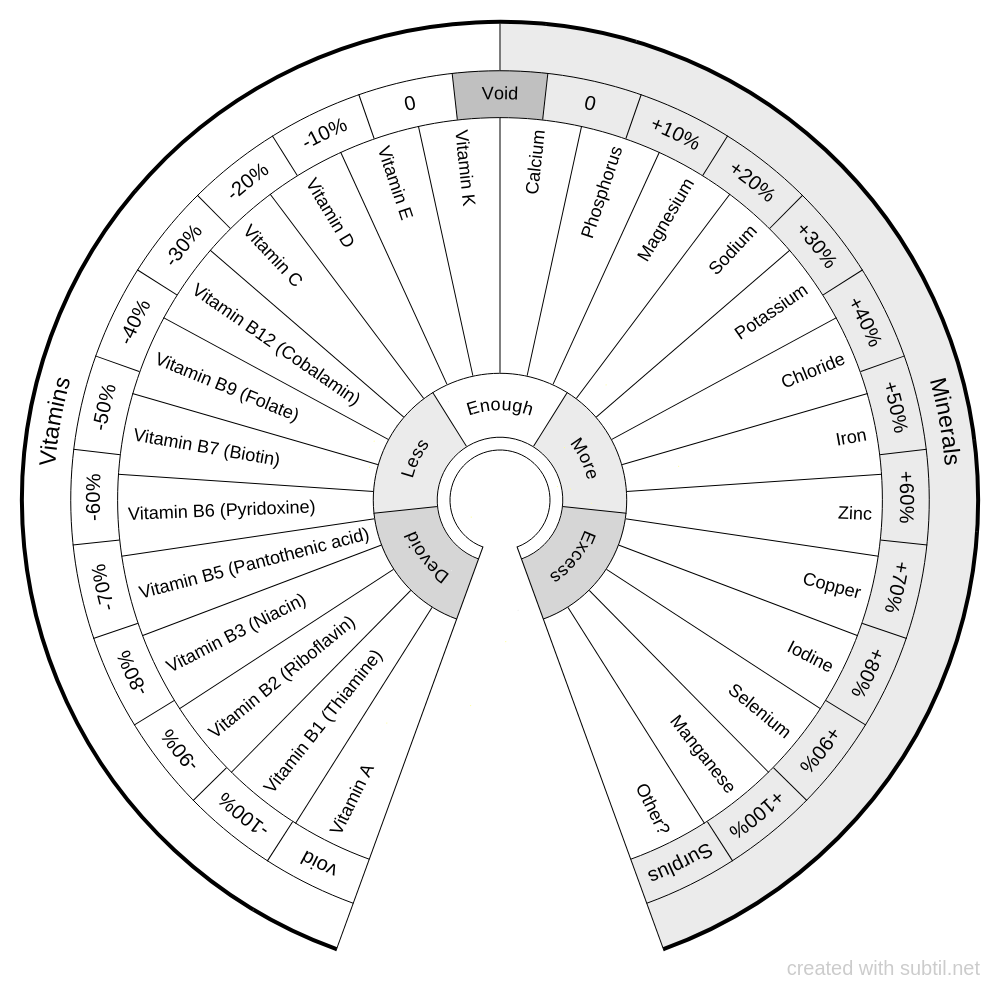 This chart is used to check the Vitamins and Minerals essential for physical health.