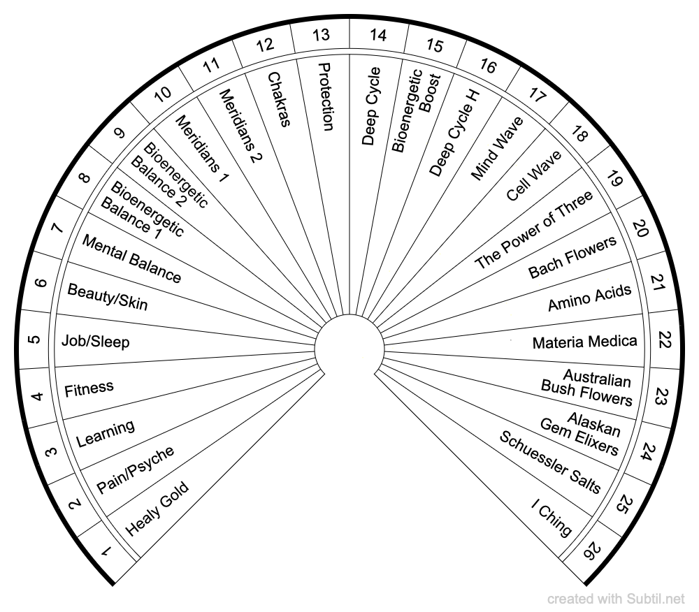 This chart includes Healy Microcurrent Programs plus the added Information Field programs.