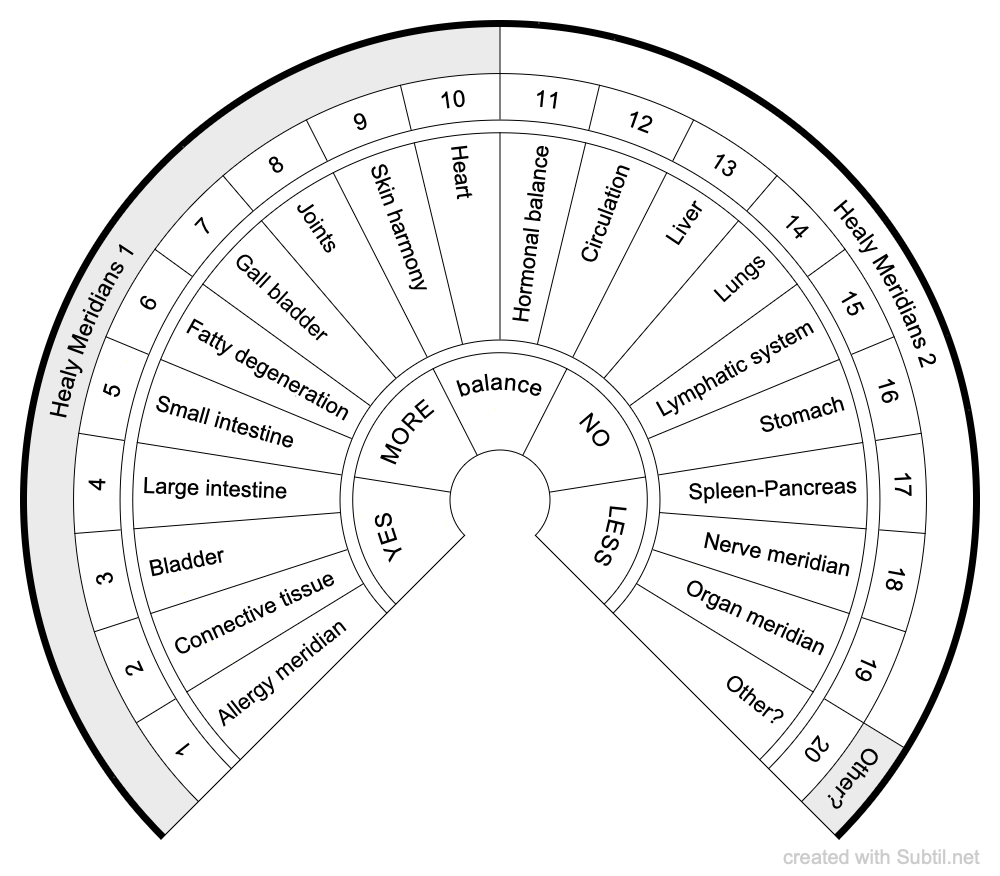 This chart includes Healy Meridian Programs 1+2; check what you require in order of priority.