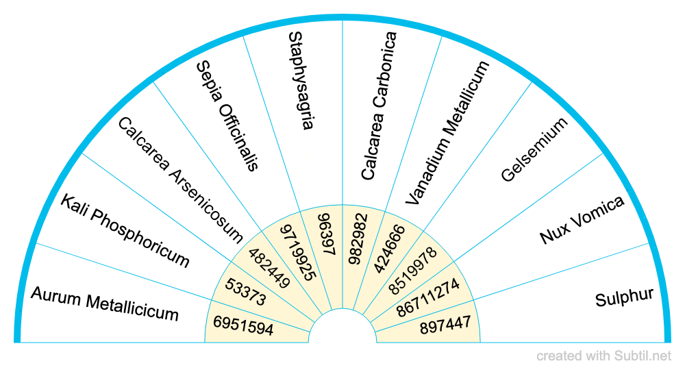 Remedies support holistic release; low potencies (6C-30C) under guidance. The numbers in the center are Base 10 rates.
