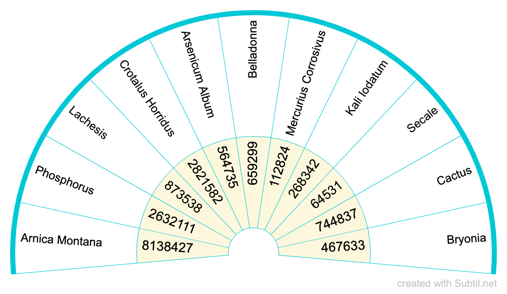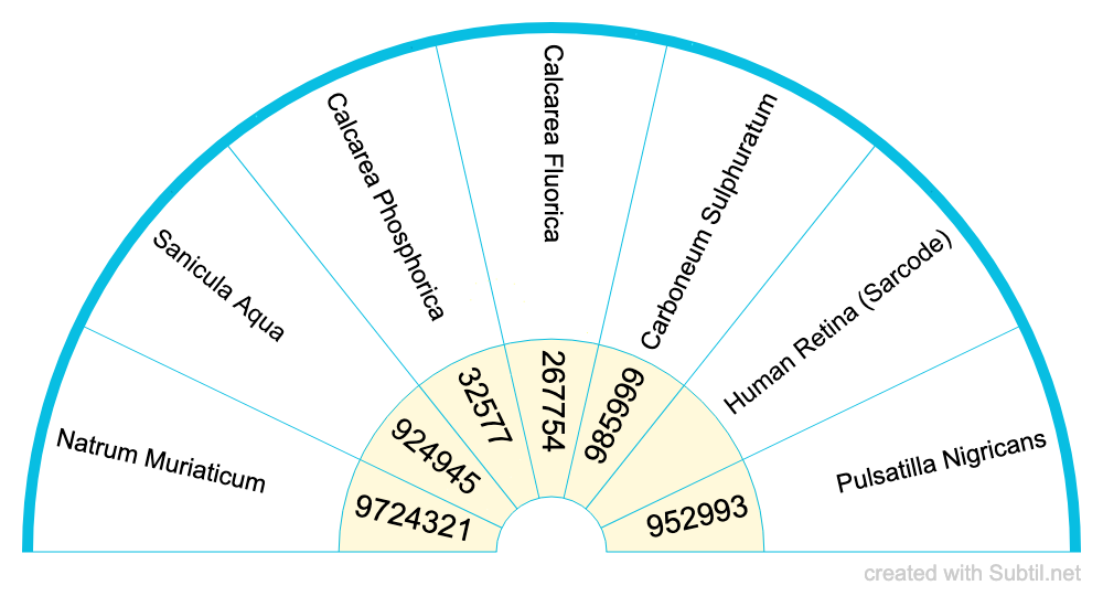 Homeopathy for wet adm 1: vessel rupture, bleeding, congestion. the numbers are base 10 rates.