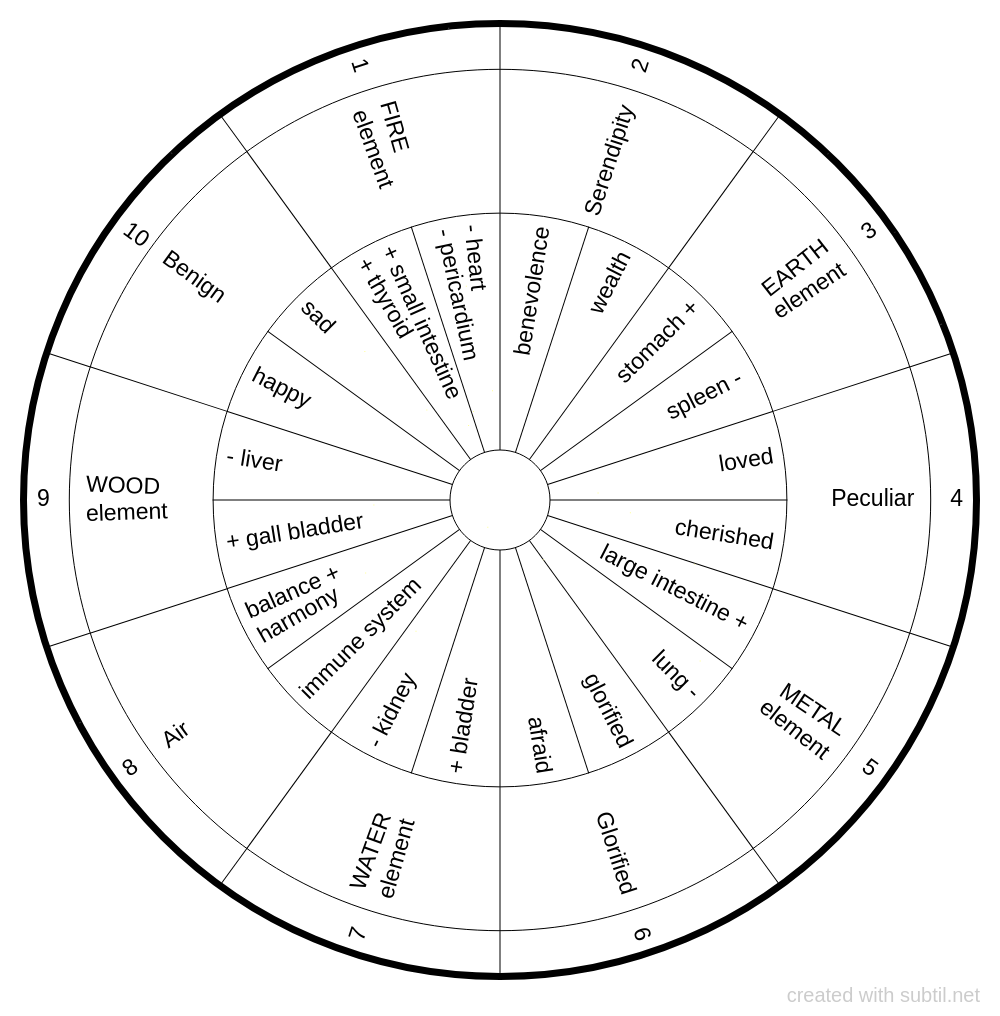 Use this chart to check for all TEN elements, shown in their correct relationship to each other.