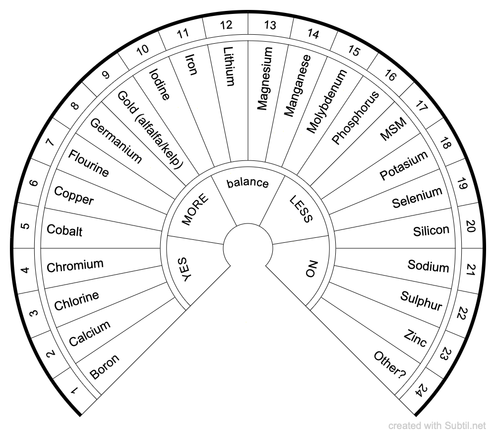 A chart to identify deficiency or excess of minerals that are required for health and well-being.