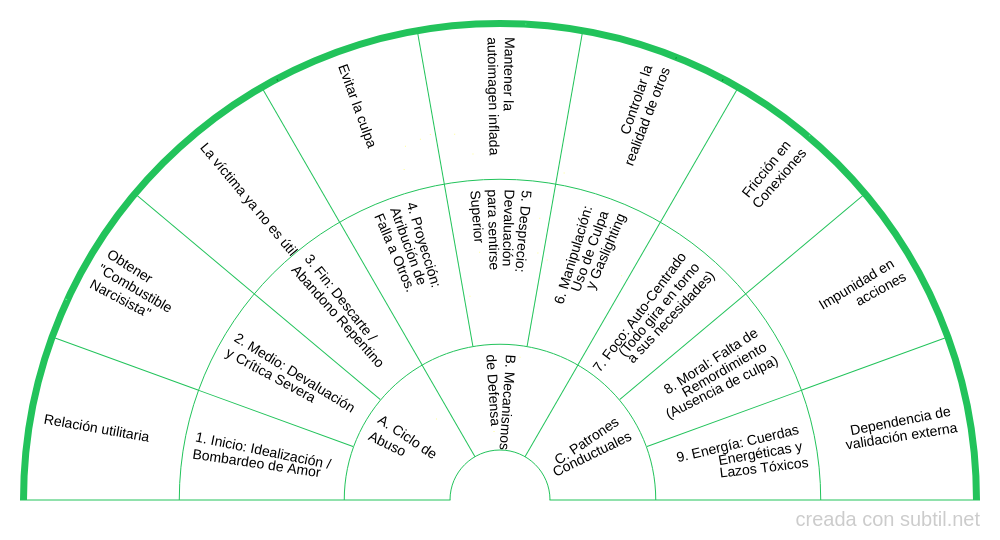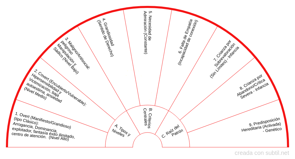 Este gráfico es crucial para sanar las interacciones tóxicas y los mecanismos que mantienen la máscara narcisista. Bibliografía: DMS 5, Walter Riso.