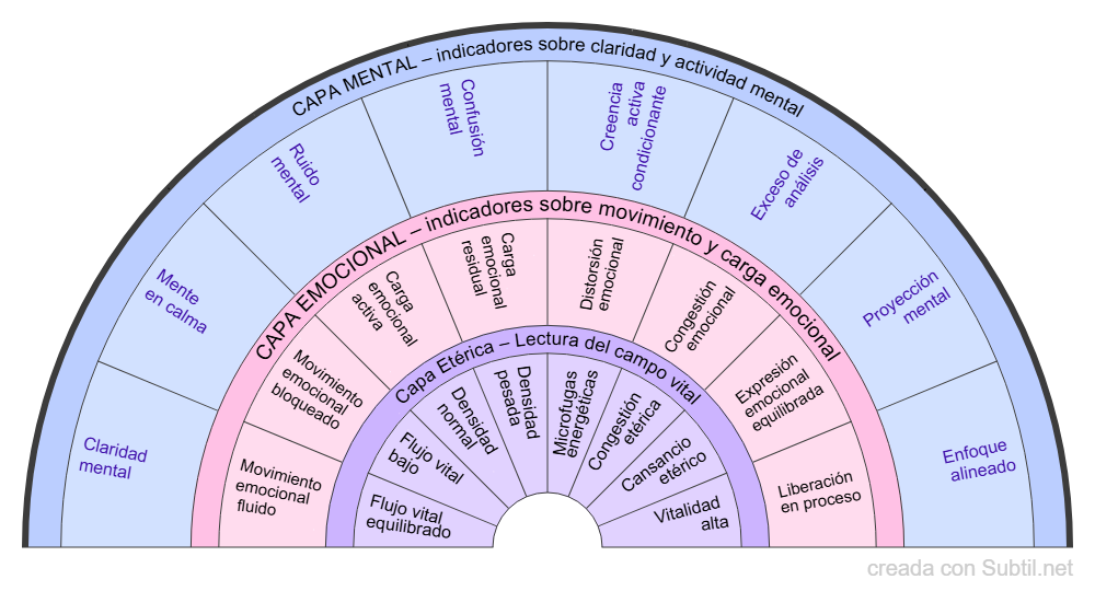 Permite identificar dónde se encuentra la mayor distorsión, qué capa necesita atención y cuál es la cualidad dominante del campo en cada momento.