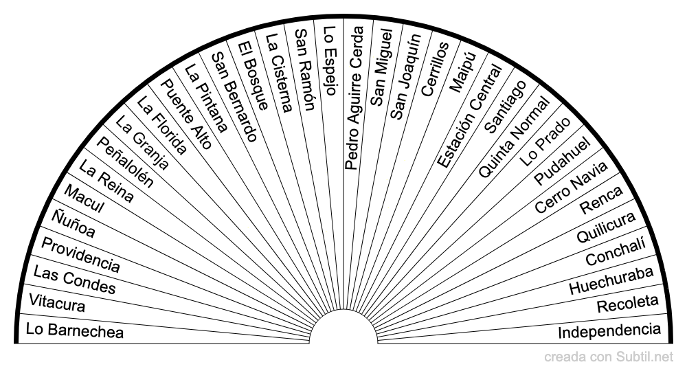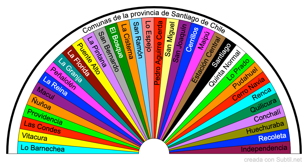 Comunas de la provincia de Santiago(32), Región Metropolitana, Chile. Se agregan San Bernardo y Puente Alto.