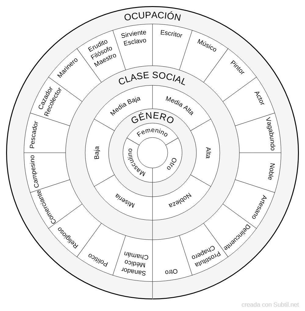 El Gráfico está dividido en grandes categorías que representan los posibles sistemas y épocas donde la creencia fué aprendida o adoptada