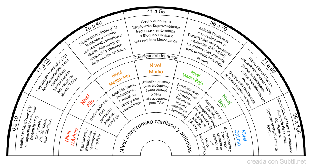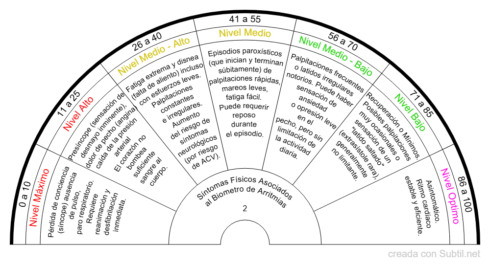 Tabla que complementa la anterior, enfocándose en las manifestaciones físicas de los distintos grados de arritmia, de menor a mayor gravedad