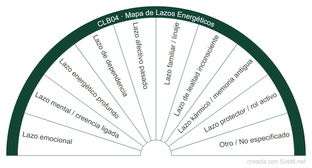 Biometro para identificar el tipo de lazo energético activo en el campo. Permite diferenciar entre lazos emocionales, mentales, energéticos, de dependencia, de linaje o kármicos, y guía hacia el mini-biometro correspondiente para realizar el corte y sellado.