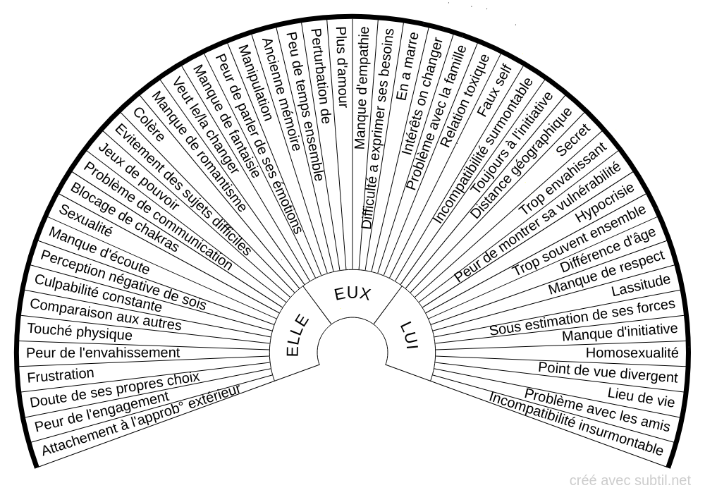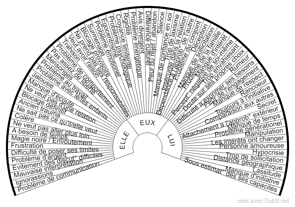Permet de trouver plusieurs problématiques dans une relation amoureuse.