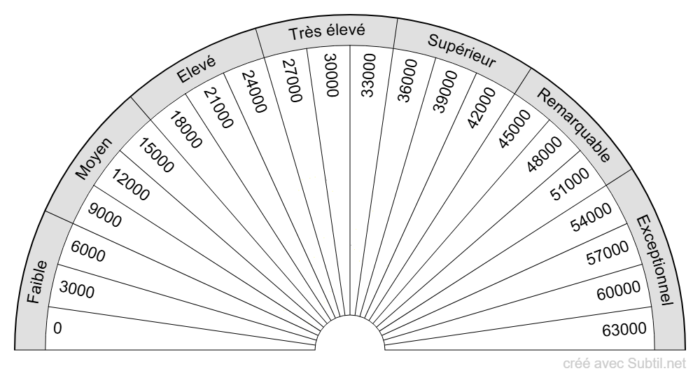 Diagramme de Bovis de 0 à 63000 par pas de 3000. En noir et blanc pour impression sur papier légèrement coloré.