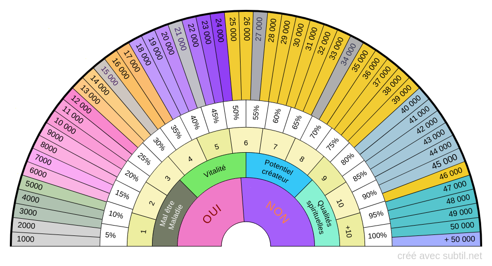 Ce graphique de radiesthésie contient le code émotionnel avec les parties du corps correspondantes. Les anneaux extérieurs numérotés de 1 à 100 représentent l'âge, afin que vous puissiez vérifier à quel âge l'émotion a été piégée. Vous pouvez utiliser le Oui/Non pour voir si l'émotion est prête à être libérée, s'il y a autre chose que vous devez découvrir à propos de l'émotion, et pour vérifier si celle-ci a été effacée.