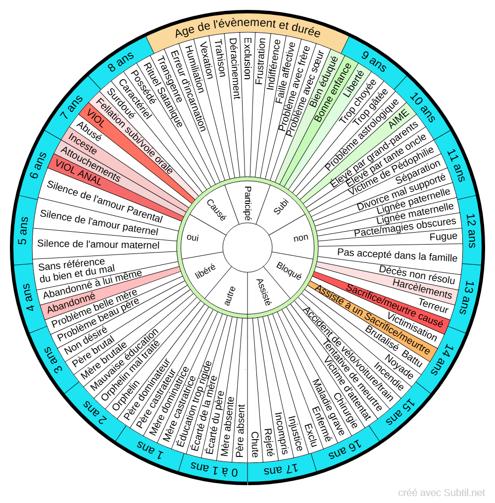 Les différents traumatismes vécues dans l'enfance qui peuvent laisser des traces, des mémoires bloquantes. Identifier la mémoires, l'âge et éventuellement la durée de la problématique.