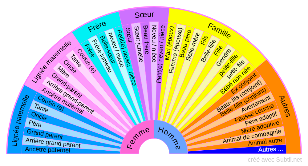Descriptif de tous les liens familiaux possible afin de déterminer quelle entité familiale est présente.