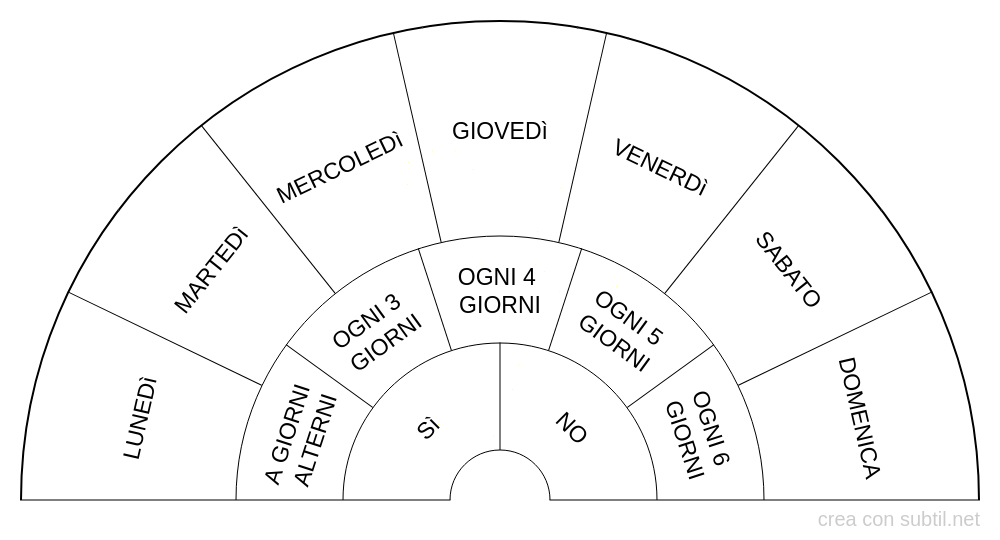 Il quadrante "Giorni della settimana" può essere utile per decidere se effettuare una pratica o una terapia, scegliere il giorno migliore, sapere ogni quanto praticare o dosare la terapia. Questo è l'intento con cui è stata creata.