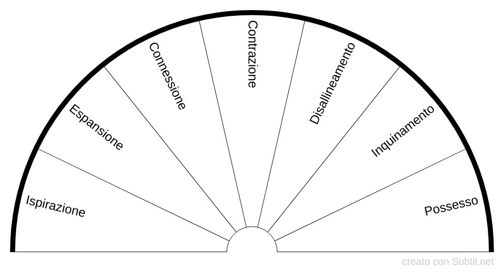 Aggiornamento del "Quadrante della polarità dello Spirito e delle attitudini mentali " Tav. 2 tratto dal libro la Radiestesia nelle indagini psichiche Ing. Pietro Zampa.