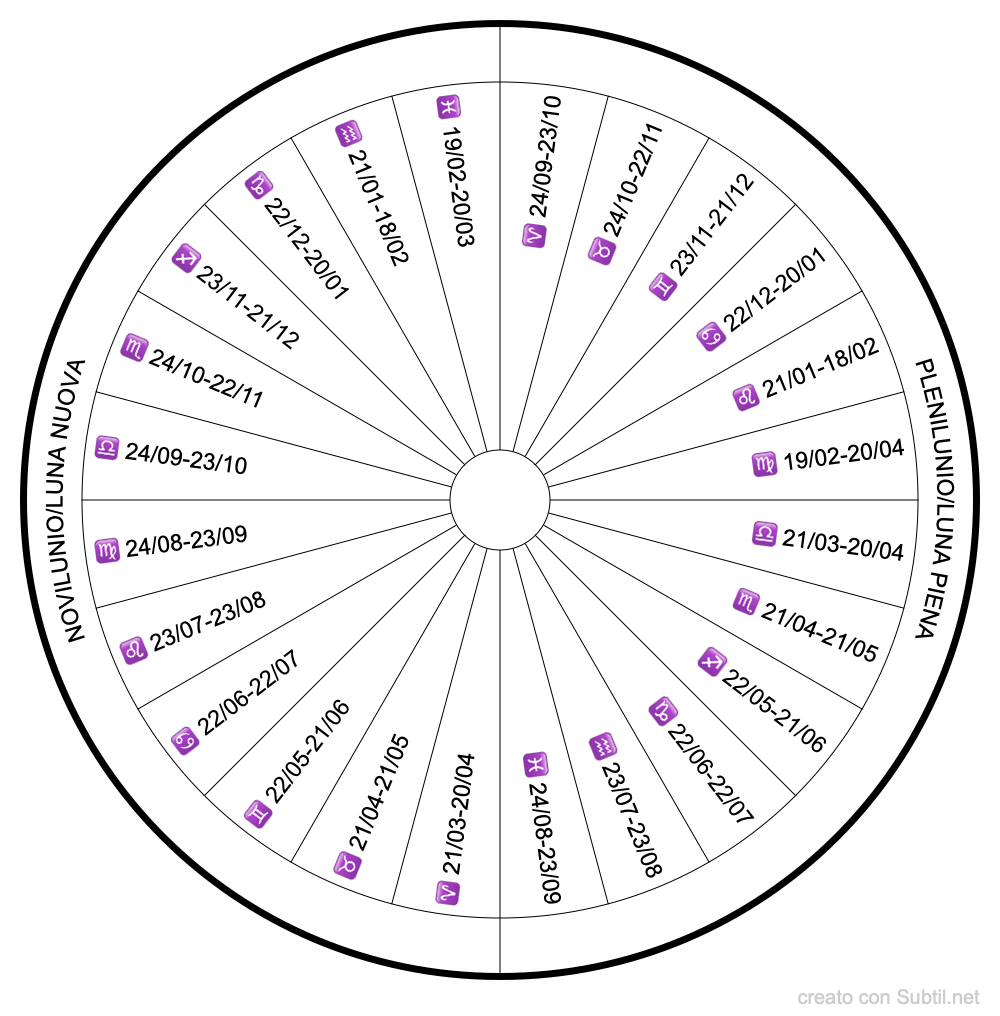 Segni zodiacali e periodi noviluni/pleniluni (lune nuove e piene)