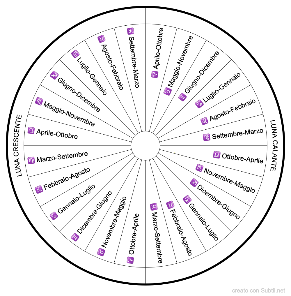 Segni Zodiacali e Periodi Fasi Lunari Crescente/Calante