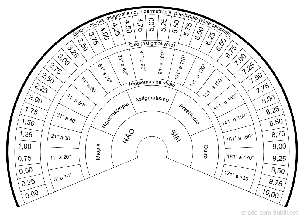 Graus de óculos até 10,00
