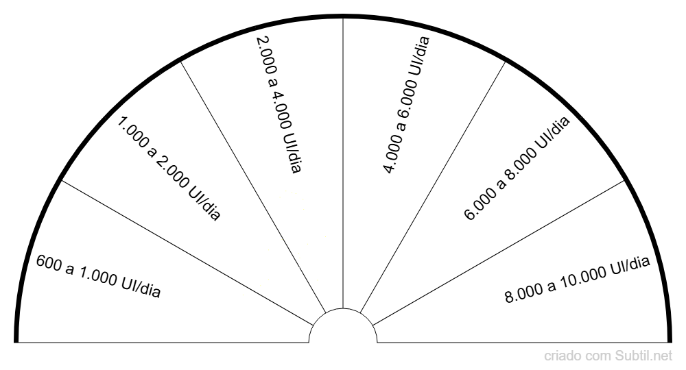 800 a 1.000 UI/dia → previne deficiência na maioria das pessoas
