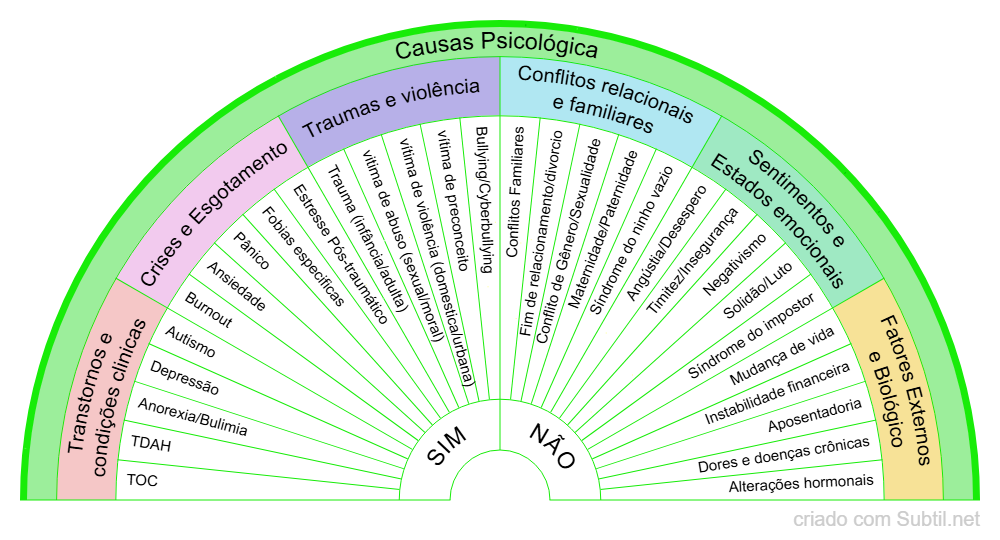• Conflito de Gênero/Sexualidade: Sofrimento ligado à descoberta ou aceitação da própria identidade.