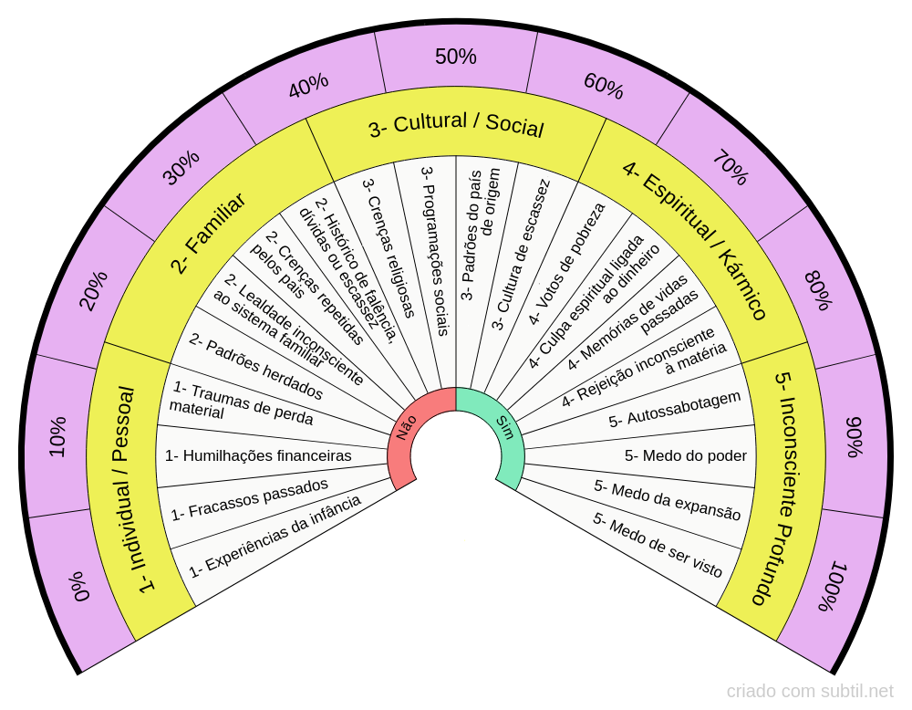 Níveis em que as crenças limitantes podem estar enraizadas (para medir onde está o maior impacto.)