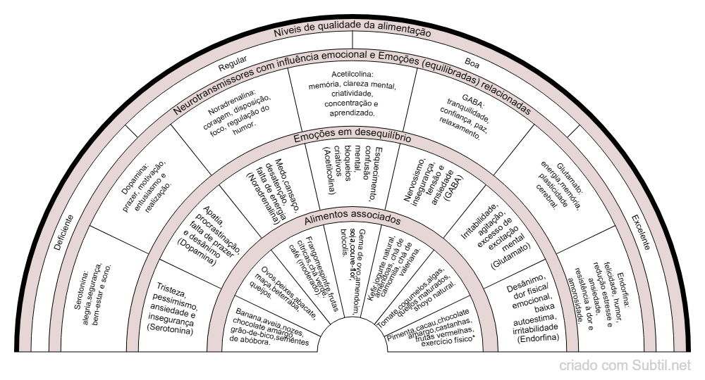 Alimentos são essenciais para a manutenção das células e para o bom funcionamento do cérebro, o que influencia diretamente as emoções, através da produção de neurotransmissores como a serotonina e a dopamina.